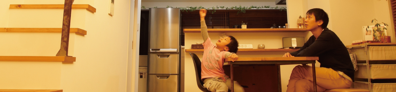 施工現場を見て即座に購入を決めました。ダイナミックなスキップフロアと、たっぷりとった収納スペースが魅力でした。工事終盤にも関わらず、家族のライフスタイルを考慮して、ダイニングの掘りごたつを制作してくれたのがうれしかったです!